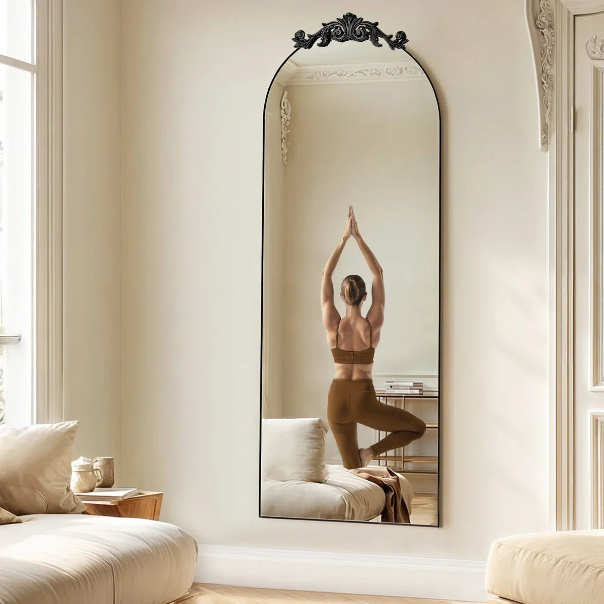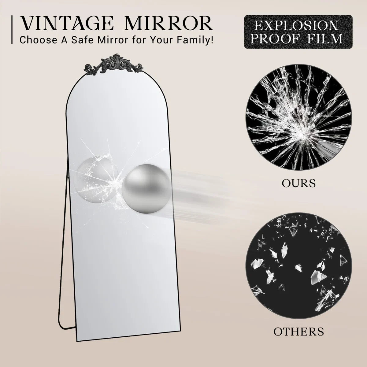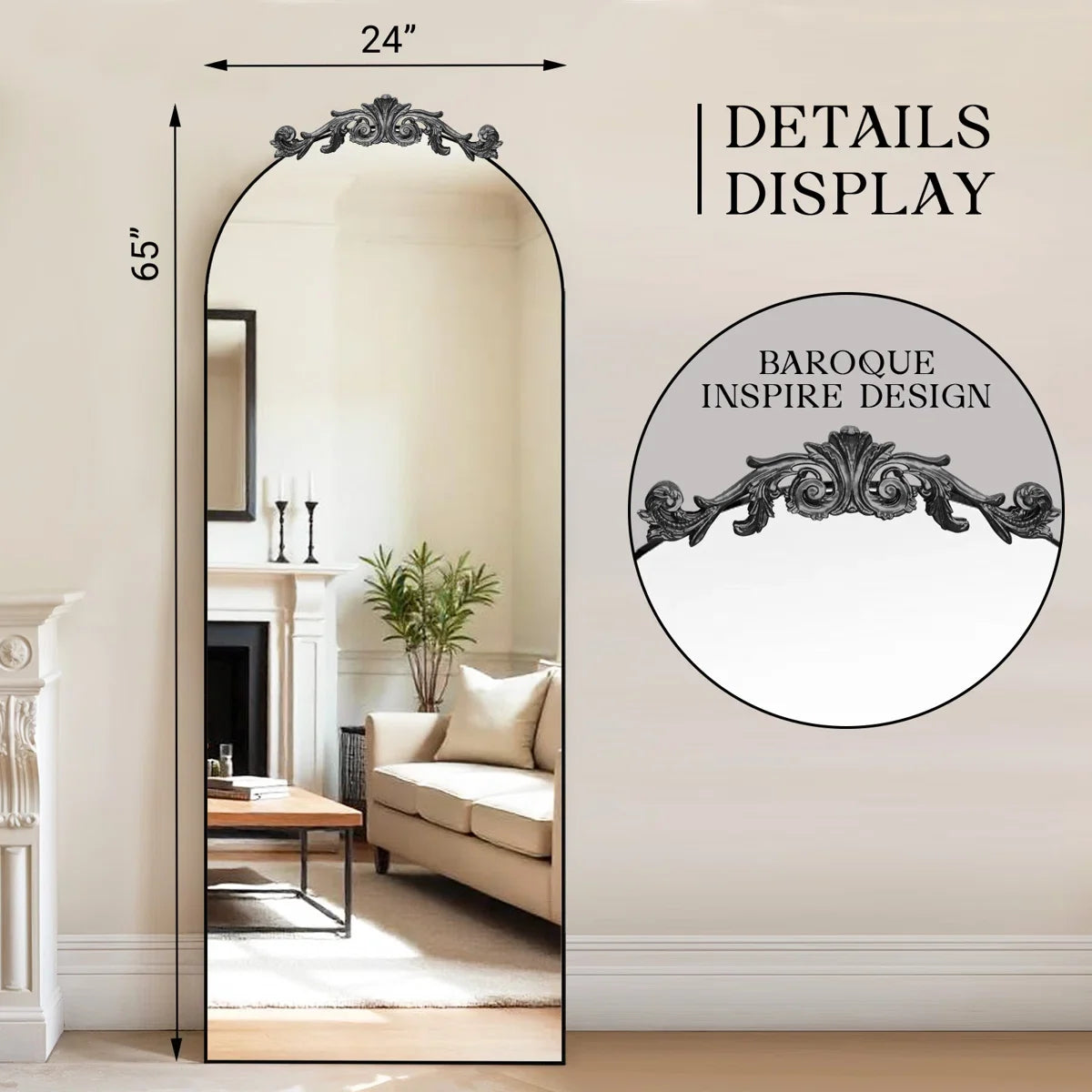 Transform your home with our 24X65 Inch vintage full - length metal mirror. Inspired by French style and modern art aesthetics, it serves as a stunning decorative element. This freestanding wall mirror fuses the charm of traditional craftsmanship with modern functionality. The metal construction is not only durable but also adds a touch of industrial sophistication. Its arched silhouette and intricately carved details make it a true statement piece. Whether placed in a bedroom, living room, or hallway, it enhances the space's aesthetic appeal. Let this mirror be the focal point that brightens your daily routine and elevates your home decor.