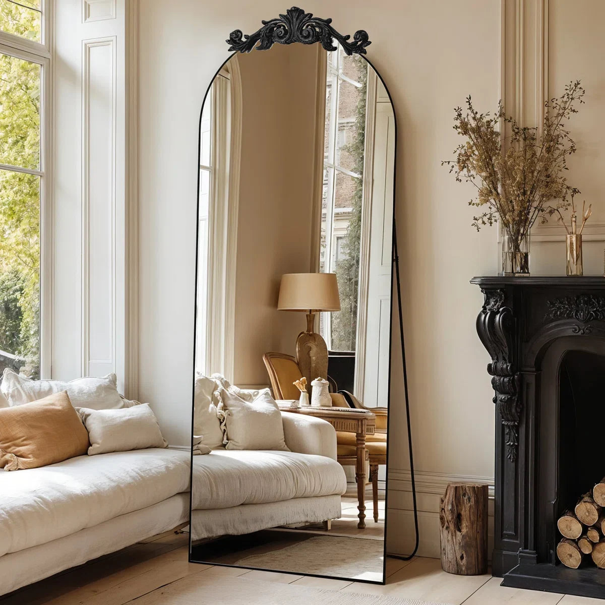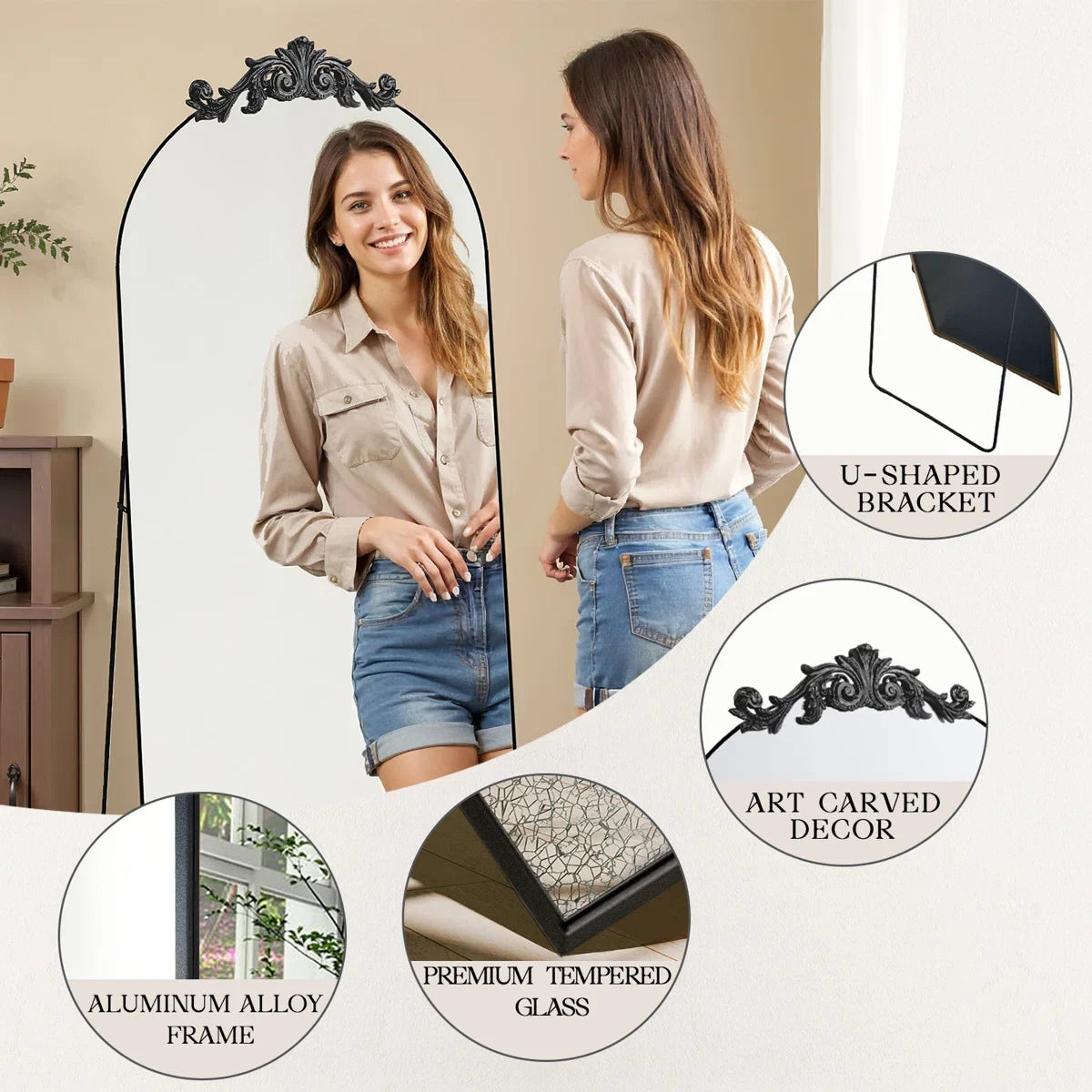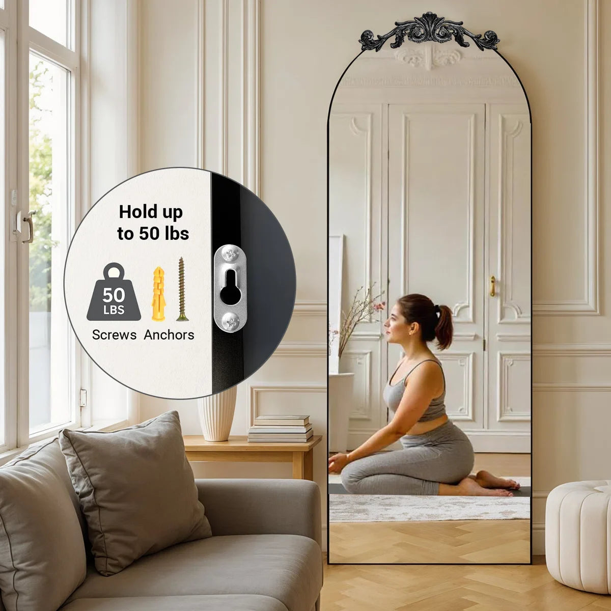 Transform your home with our 24X65 Inch vintage full - length metal mirror. Inspired by French style and modern art aesthetics, it serves as a stunning decorative element. This freestanding wall mirror fuses the charm of traditional craftsmanship with modern functionality. The metal construction is not only durable but also adds a touch of industrial sophistication. Its arched silhouette and intricately carved details make it a true statement piece. Whether placed in a bedroom, living room, or hallway, it enhances the space's aesthetic appeal. Let this mirror be the focal point that brightens your daily routine and elevates your home decor.