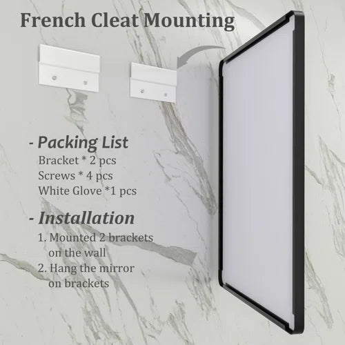 - Horizontal or Vertical French Cleat Mounting: Install the bracket to the wall using the included screws and anchors and then just hang the mirror on horizontally or vertically. (The mirror can be removed from the bracket and leaned against the wall as ornaments.)