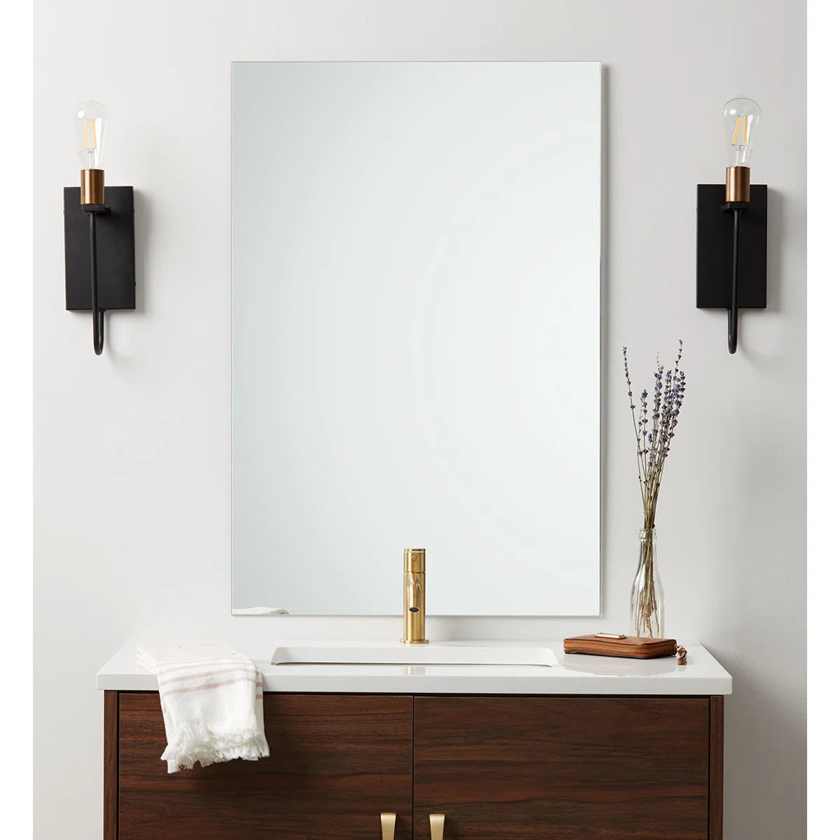 This frameless wall mirror is perfect for endless styles and locations. Used as a vanity mirror in your bathroom or as an accent piece elsewhere in your home, this simple yet elegant design is sure to impress. Featuring premium quality glass, z-bar brackets for hanging, and high-polished edges, this mirror is designed to open up and add style to your home.