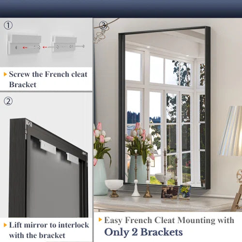 - Easy installation & enhanced packaging - the large bathroom mirror is designed with 4 built-in slots on the back for hanging horizontally or vertically. Super easy to install with one French cleat bracket. Hardware included. We have designed an enhanced 4-layer packaging with wooden frames for mirrors over 48 inches, so you don't need to worry about receiving a broken mirror.