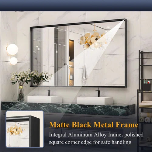 - Modern design - the metal mirror has the chicest brushed matte finish, coming with a 1.6" depth aluminum alloy frame. With a classic square corner design, the vanity mirror allows for creativity and functionality in the bathroom, bedroom, entryway, and anywhere else. Let your living space be an expression of your style, not limited to modern or contemporary, farmhouse or industrial.