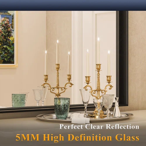 A new Interpretation of the classic square corner mirror: Unlike other cheap and flat square corner mirrors, this innovative design allows the glass to float in the middle of the 1.6" metal frame, giving the mirror a more three-dimensional feel. We hope this new design of square corner mirrors will be beyond classic and add a sense of luxury to your room.
